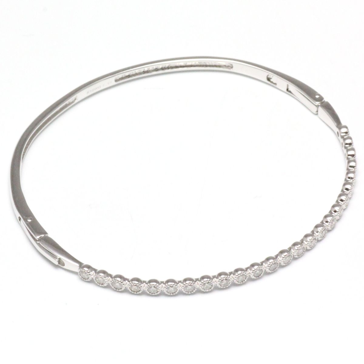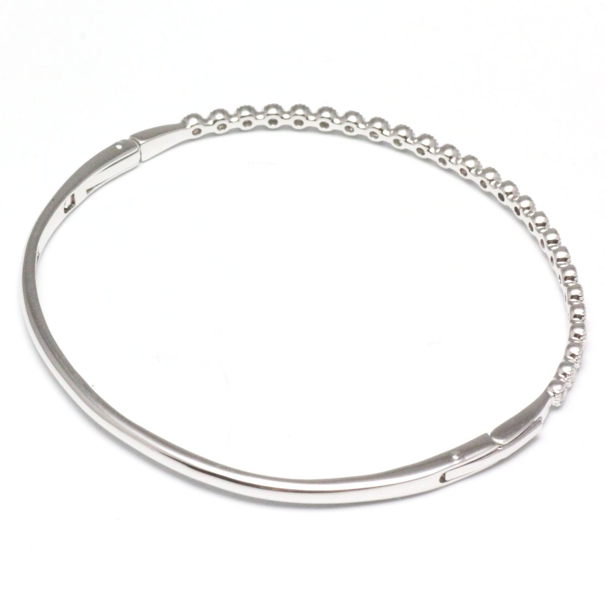 ホワイトゴールド製、細身のダイヤモンド入りバングル。