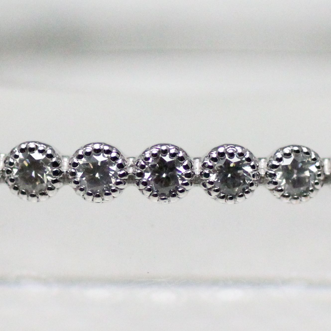 ホワイトゴールド製、細身のダイヤモンド入りバングル。